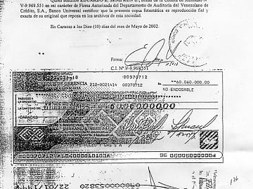 "Nosotros mostramos las copias de unos cheques (...) Uno de 25 de millones de bolívares (25 mil bolívares de los actuales) y otro de 60 millones (60 mil bolívares de los actuales)", que recibió en el año 1998 Julio Borges, como presuntas donaciones para su partido Primero Justicia".