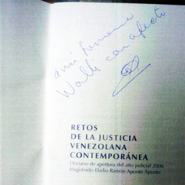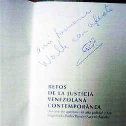 Dedicatoria de Eladio Aponte Aponte al narcotraficante Walid Makled "a mi hermano Walli con afecto" |