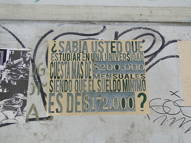 Fotoleyenda: Un cartel colocado en las calles de Valparaíso refleja la realidad chilena /Crédito de Foto MR